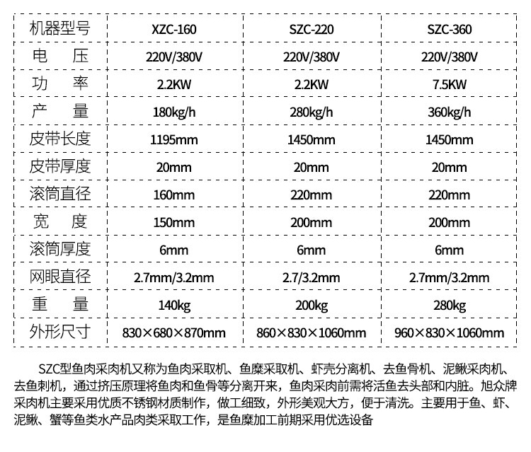 名稱魚肉采肉機 電源 功率 產量 尺寸 重量 規格 其他